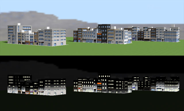 このプラグインの説明 どこかで見たことがあるような中層商業ビルです。 ・外壁の色を3種類 ・看板のデザインを3種類無地白黒看板なし ・階層を数種類 から選択できます。 夜間発光。看板以外の照明は日付が変わる頃に順次消えます。 ※※※施設パッケージに統合しました※※※