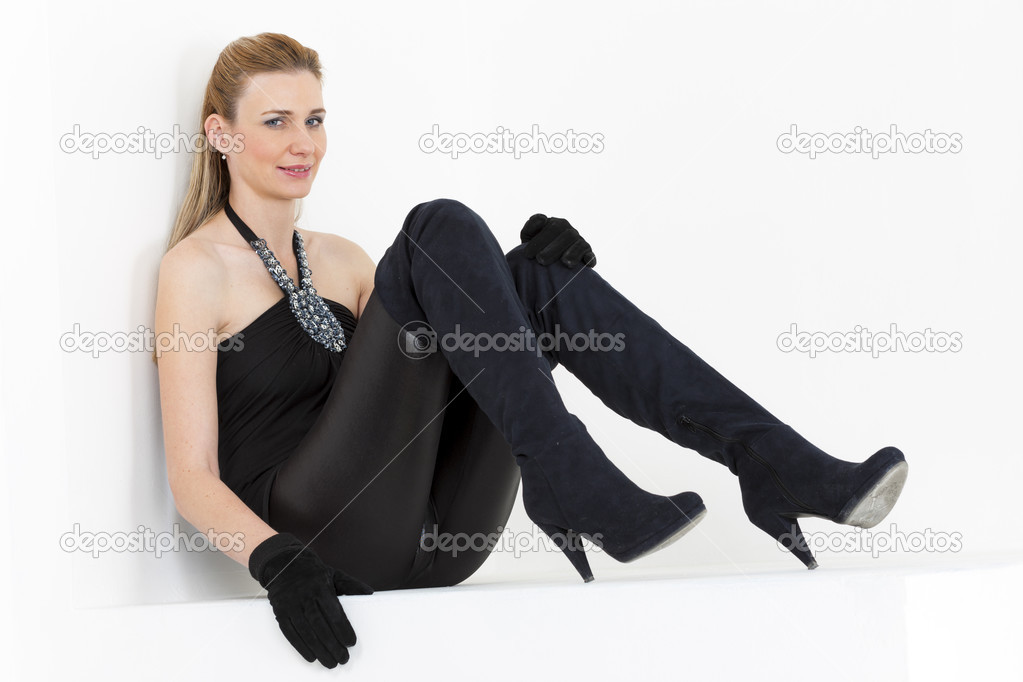 女 黒い服 衣服 女 黒 床 モデル Canstock